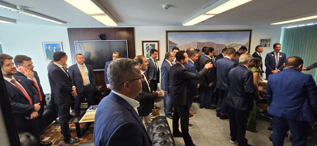 O senador Ciro Nogueira (Progressistas), pré-candidato a reeleição, recebeu uma grande quantidade de prefeitos em seu gabinete, no final da tarde de terça-feira (2), no gabinte dele em Brasília (DF).